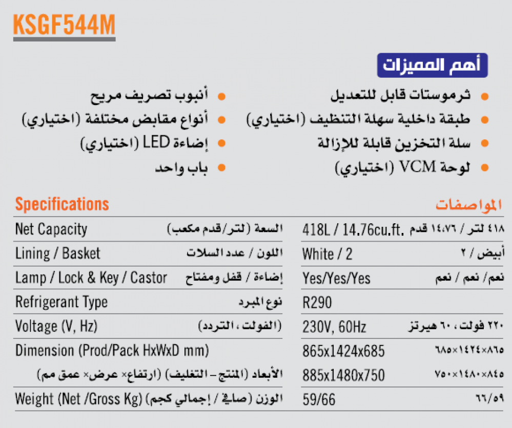 فريزر سوبر جنرال مسطح 14.7قدم ابيض