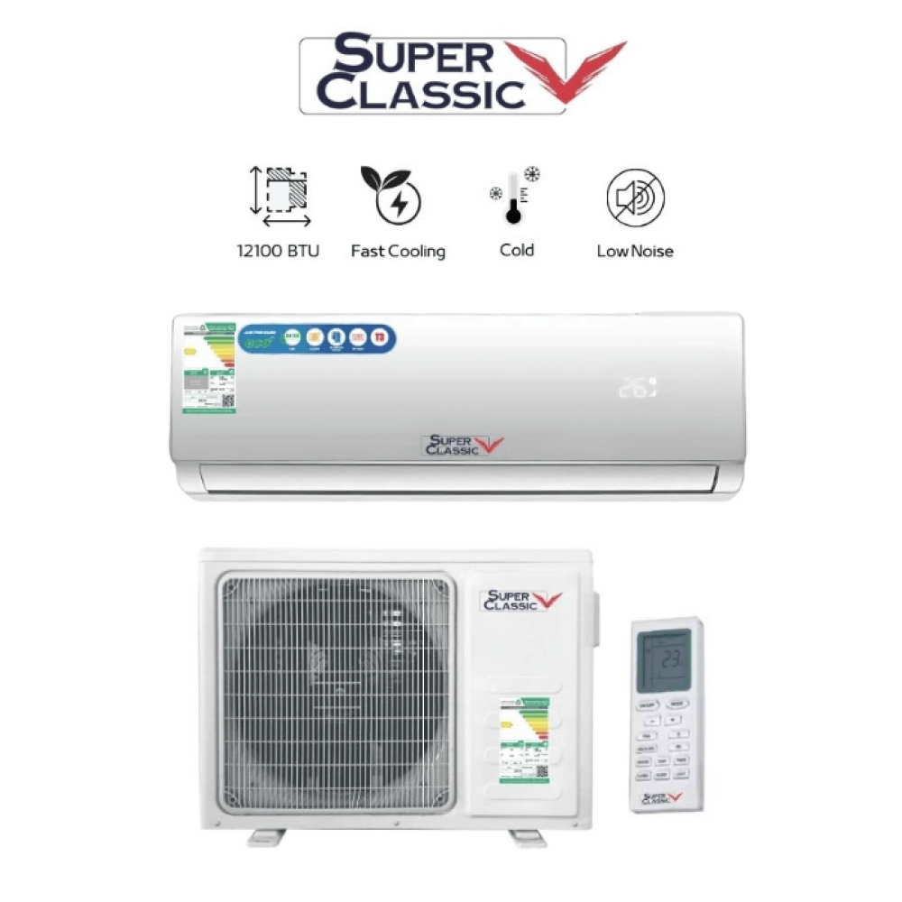 The Super Classic SCSP-12C split air conditioner is the ideal choice for small and medium-sized spaces. It boasts a cooling capacity of up to 12,100 BTU, making it ideal for maintaining a comfortable atmosphere at all times. The air conditioner features advanced cooling technology that delivers maximum energy efficiency, helping to reduce your electricity bill. It also features a modern, elegant design that complements all interior decors.